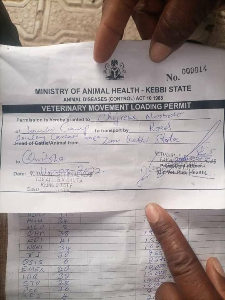 On 11th March 2022, We bought Smoked Donkey Meat at Kebbi Livestock Market and loaded it after getting all the necessary clearance from the Ministry of Animal Health Kebbi state.