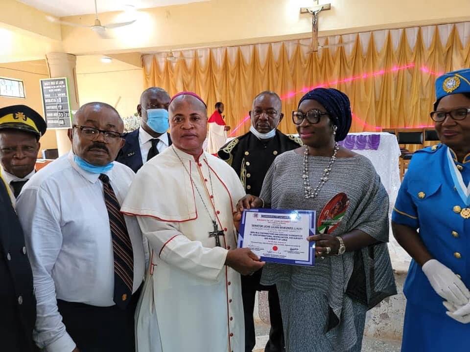 Senator Uche Ekwunife (Iyom) on Sunday 20th December, 2020 received Distinguished Excellence Award from the Knights and Ladies of St. John International Commandery 434 and Laux 363 at St. Patrick’s Cathedral Awka, Anambra State.