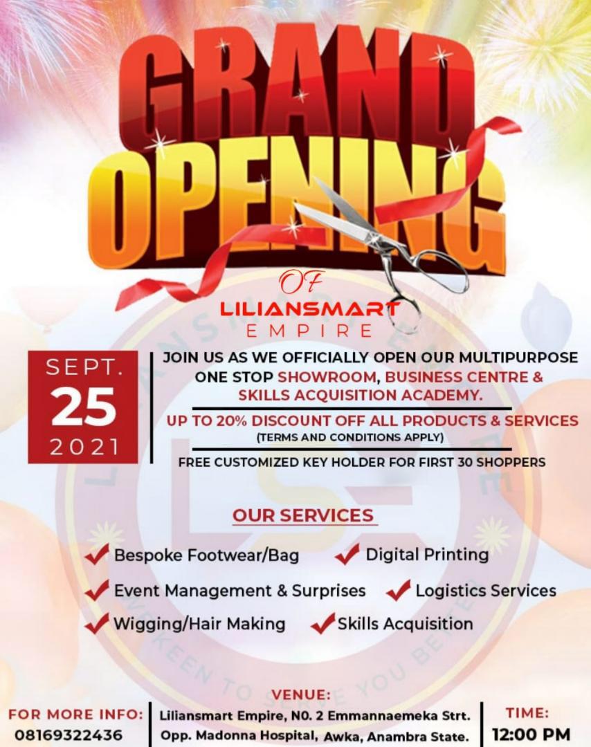 Location: LilianSmart Empire, No 2 Emma Nnaemeka Street, opposite Madonna Hospital Awka, Anambra State.