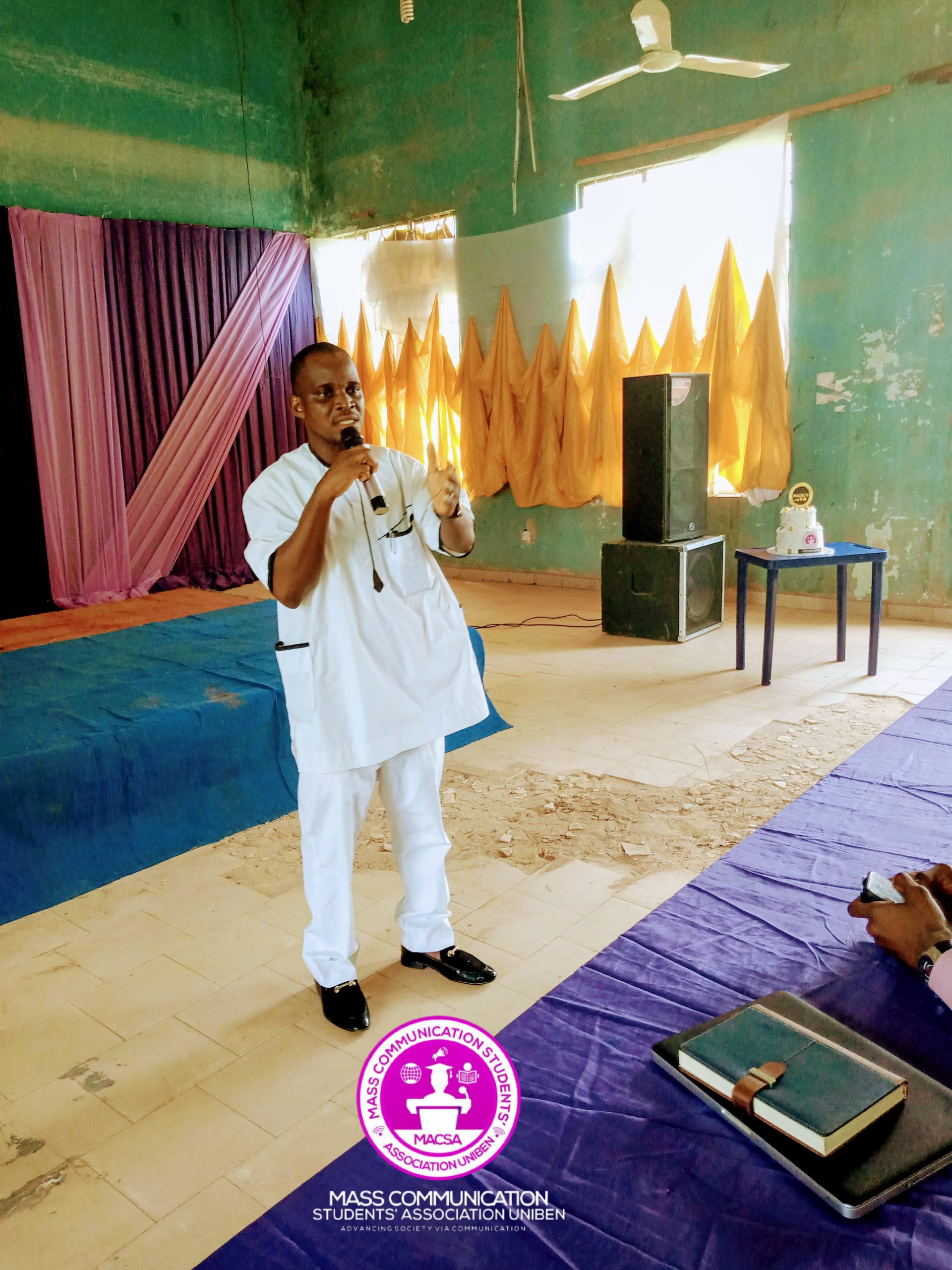 On his part, the Special Guest, BBC Correspondent, and a former President of the Association, Jegede Joseph intimated the students on the need to learn digital skills, be prayerful and also join in other campus activities. He stressed the need for students to develop passion for what they do.