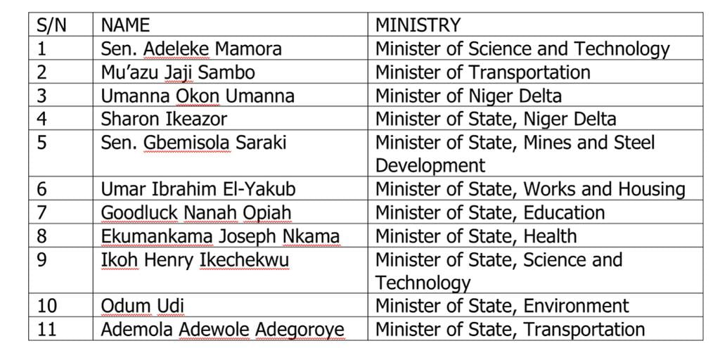 - Senator Adeleke Mamora, Minister of Science and Technology (formerly Minister of State, Health);