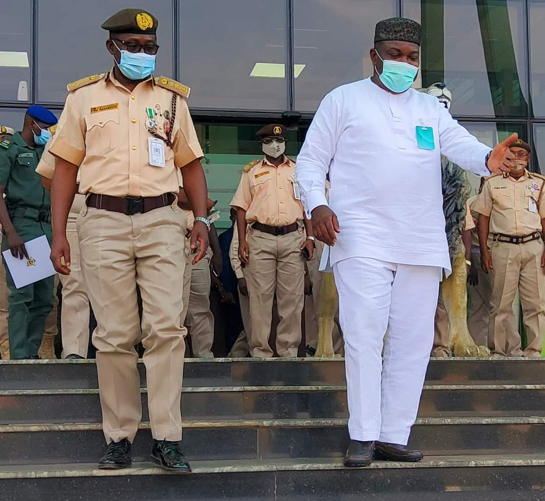 The Comptroller-General was in Enugu with his entourage to assess the degree of damage done to the newly constructed office of the Nigeria Immigration Service, Enugu State Command, during the hijacked EndSARS protests in the state.