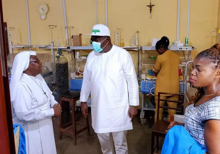 Gov. Ugwuanyi also visited the Children’s Ward of the Mother of Christ Hospital, Ogui Enugu, including the Special Baby Care Unit where he identified with the babies and made funds available for their proper medical care.