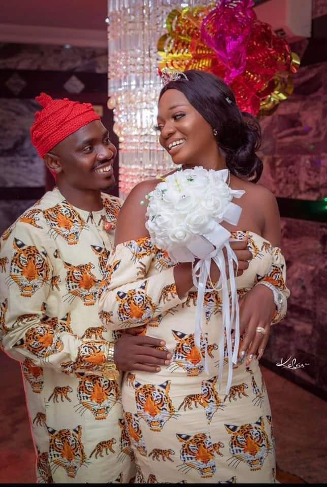A Nigerian couple, Ekigbo Sampson Nnamdi and wife, Victoria Nnamdi have gone viral after they wedded on popular Igbo attire, Ishiagu, inside church in Ebonyi State.
