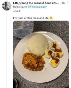 Some Nigerians used their comments section to react to their tweets. While others shared photos of the meager food they were served at restaurants also on the island, others shared photos of the slice of food they were offered when they visited mainland restaurants in Lagos.