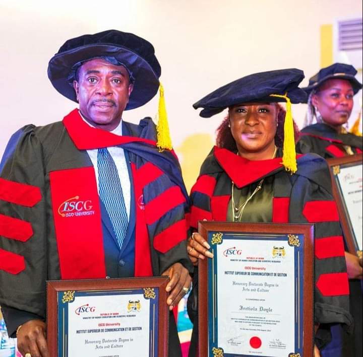 Nollywood actors, Ireti Doyle and Bob-Manuel Obidimma Udokwu have been conferred with honorary doctorate degrees from Institut Superieur de Communication et de Gestion University in Benin Republic.