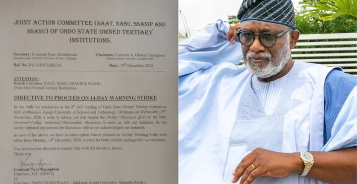 To press home their demand for a better welfare package, the Joint Action Committee of Ondo state-owned tertiary institutions (JAC) has embarked on a 14-day warning strike, Insidenaija reports.