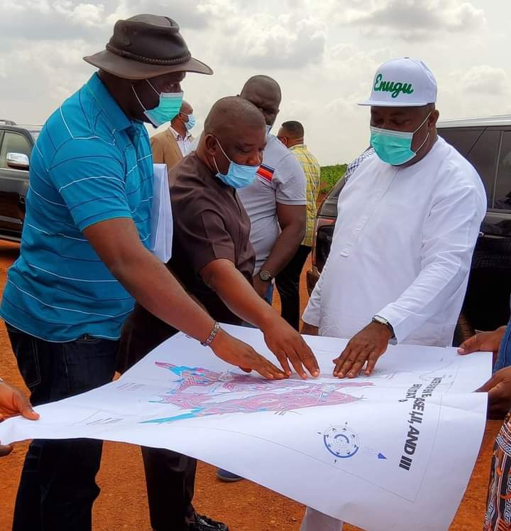 #Governor Ifeanyi #Ugwuanyi of #Enugu State, accompanied by the State Commissioner for Housing, Hon. Vitus Okechi and his team of engineers and surveyors, inspects the ongoing massive developments at Enugu’s biggest #housing project, ‘The New Enugu City’ sitting on 2,667 hectares of land, in three phases, adjacent to Independence Layout, Phase II, Enugu.