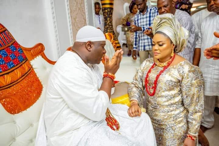 in News, Photo News PHOTOS: Ooni’s New Wife, Mariam by Essential Ndubuisi September 8, 2022, 5:05 am The Ooni of Ife, Oba Enitan Ogunwusi, has married a new wife, Mariam. Photos from the marital rites which held on Tuesday were shared by the palace spokesperson, Moses Olafare, on Wednesday on his Facebook page. — WhatsApp Facebook Twitter LinkedIn OoniWife See more Previous article See Letter Actress, Eniola Badmus, Wrote To Self On Birthday Next article DSS Confirms Arrest Of Abuja-Kano Train Bandits Negotiator Leave a Reply Cancel replyYou must be logged in to post a comment.