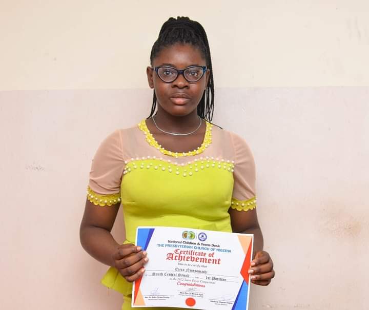 A 16-year-old Ezera Nmesomachi has emerged the overall winner of the 2022 Teens Essay Competition organized by The National Children and Teens Desk of The Presbyterian Church Of Nigeria.