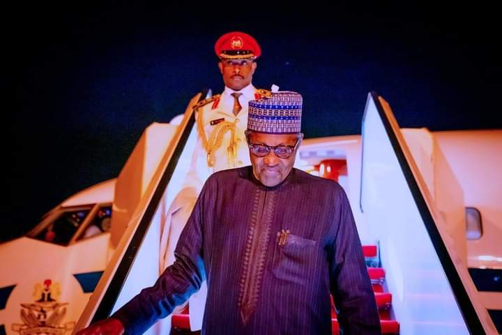 in News, Photo News President Buhari Returns From From London [PHOTOS] by Essential Ndubuisi November 14, 2022, 3:44 am The President, Major General Muhammadu Buhari (retd.), on Sunday, arrived Abuja from London after a routine two-week medical check-up. He left for London on October 31, 2022. WhatsApp Facebook Twitter LinkedIn Major General Muhammadu Buhari See more Previous article Oyo State Governor, Makinde Runs Half Marathon With Daughter In US Next article Nigerian Singer, Chinko Ekun, Reveals How He Became Homeless In 2020 Leave a Reply Cancel replyYou must be logged in to post a comment.