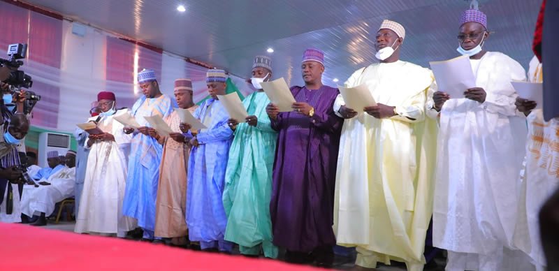 Two professors were among the 27 local government chairmen sworn in in Borno State on Wednesday.