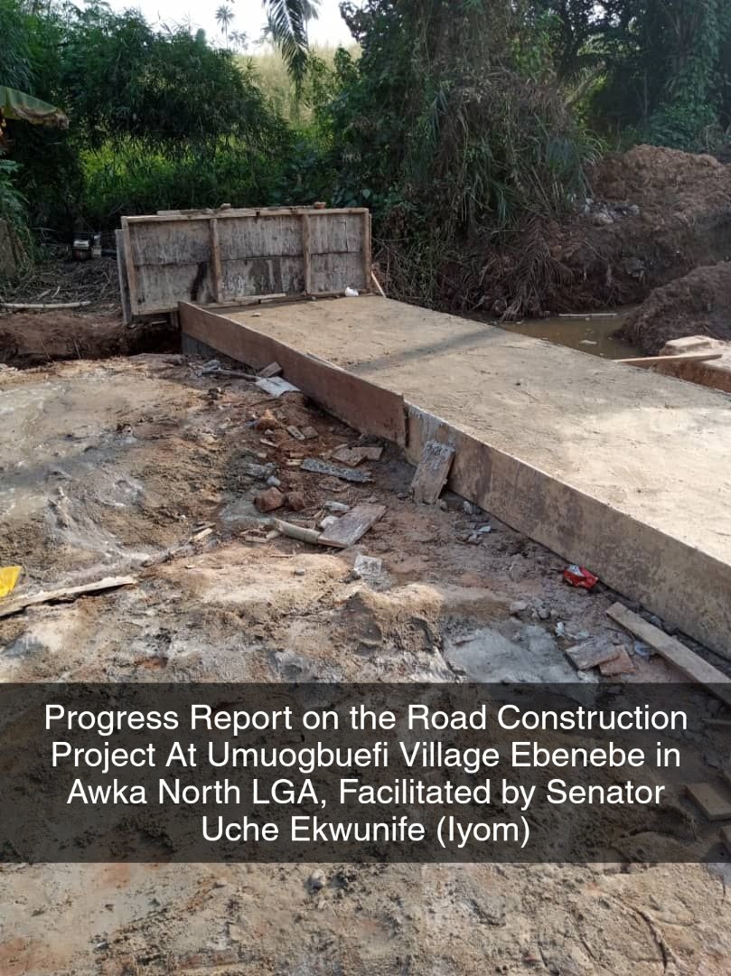 Ndi Anambra Central, we bring you progress report on the Road Construction Project At Umuogbuefi Village Ebenebe in Awka North Local Government Area, Facilitated by Senator Uche Ekwunife (Iyom).