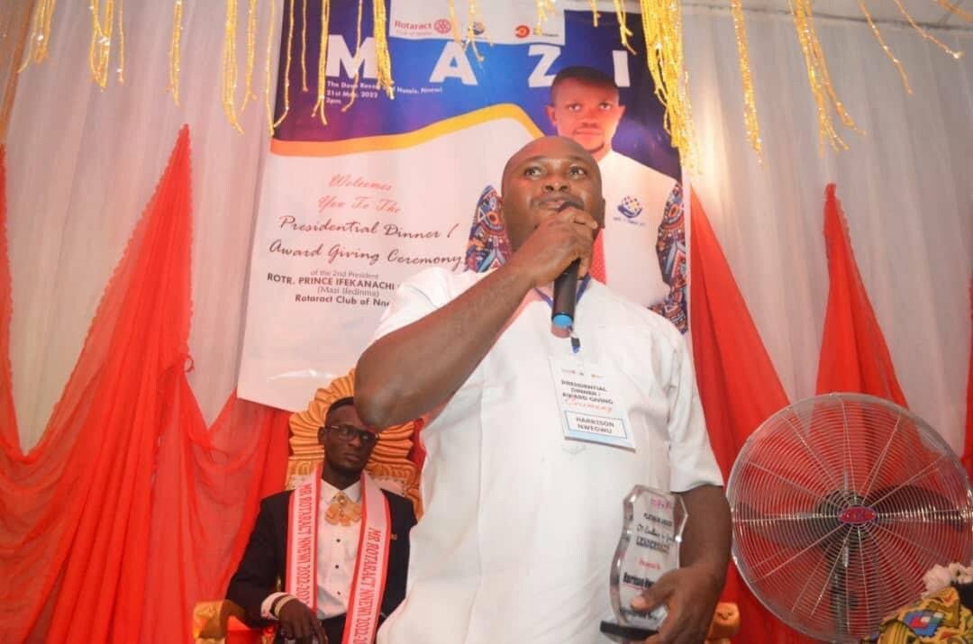 At the Presidential Dinner and Award Giving Ceremony of the second President of the Rotaract Club of Nnewi, Zone 9, Anambra State, District 9142, Rotr. Prince Ifekanachi Okeke popularly known as Mazi Ifedinma held on Saturday, the 21st day of May, 2022;
