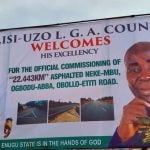 Inaugurating the all-important rural road which connects Isi-Uzo and Udenu Local Government Areas of the state, Gov. Ugwuanyi disclosed that the project was in line with his administration’s rural development agenda, stressing that it will ease “the movement of goods and persons while advancing our administration’s rural connectivity and integrated development strategy”.