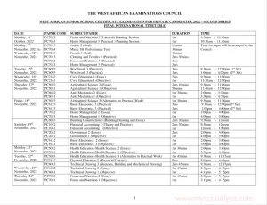 IT IS ADVISABLE TO MAKE REFERENCES WITH THE PDF VERSION OF THE 2022 WAEC GCE TIMETABLE.