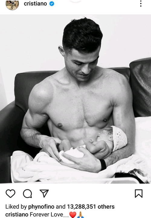 Football legend, Cristiano Ronaldo has shown off his cute newborn baby on IG, WonderTV Media reports.