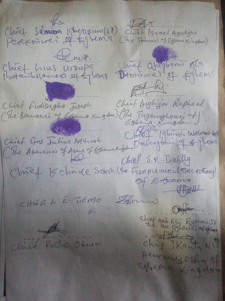 One of the kingmakers, Chief W. E. Igbiriki, the Obuoyimi of Egbema kingdom, on Wednesday, told journalists that “The proclamation which was done by the eldest man of Ofunama community, Pa Abudu Eyituoyo, at the administrative headquarters of the Egbema Kingdom was endorsed by the traditional council of Chiefs in line with the gazette of the Kingdom.”