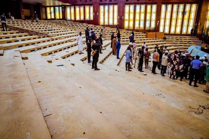 The Speaker of the House of Representatives, Femi Gbajabiamila, on Wednesday, inspected the ongoing renovation of the green chamber of the National Assembly in Abuja.