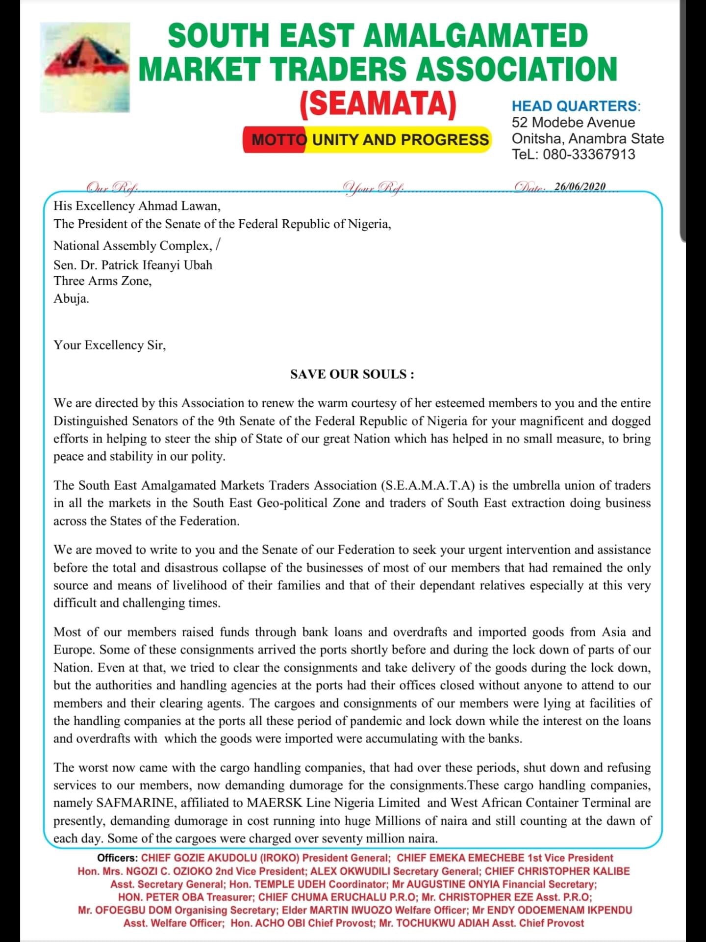 2. Furthermore, today, I also came under Order 43 of the Senate Rules to move an important motion alerting the leadership of the Senate of the excruciating pains and extortion suffered by the South East Market Traders Association(SEAMATA) in the hands of PIL Shipping company entrusted with the task of delivering Southeast importers/SEAMATA’s containers from China to ports in Nigeria. Subsequently, I was given express approval to present this motion comprehensively on the floor of the Senate in the next plenary session.”