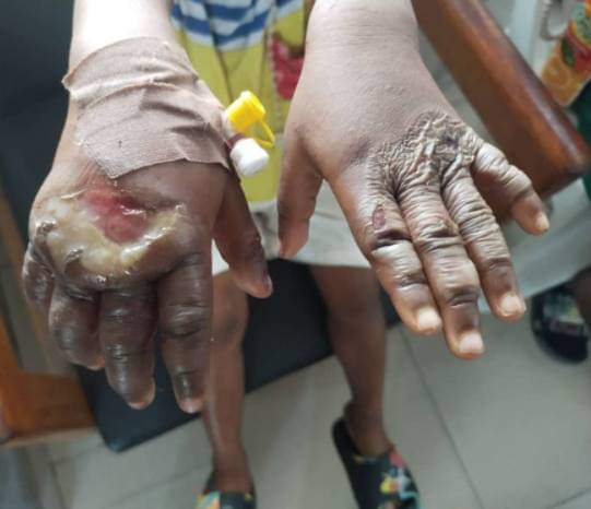 He said: “The mother alleged that her five-year-old daughter stole her fish, so she dipped her hands in a very hot water, that was how she reacted to the alleged stealing.