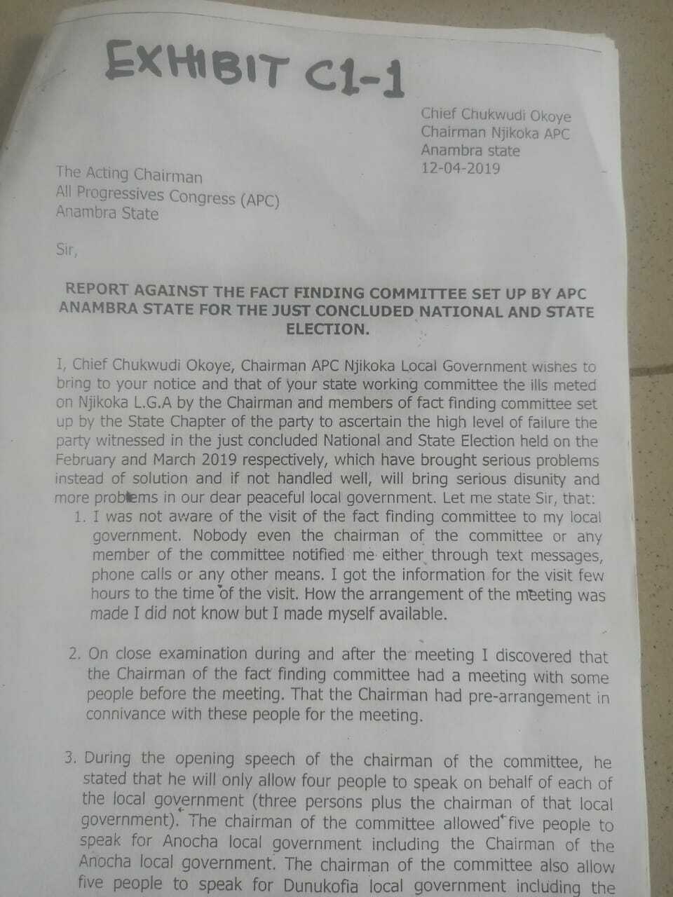 .… Urges APC National to disregard the purported statement from one faceless Group called Coalition of South East APC.