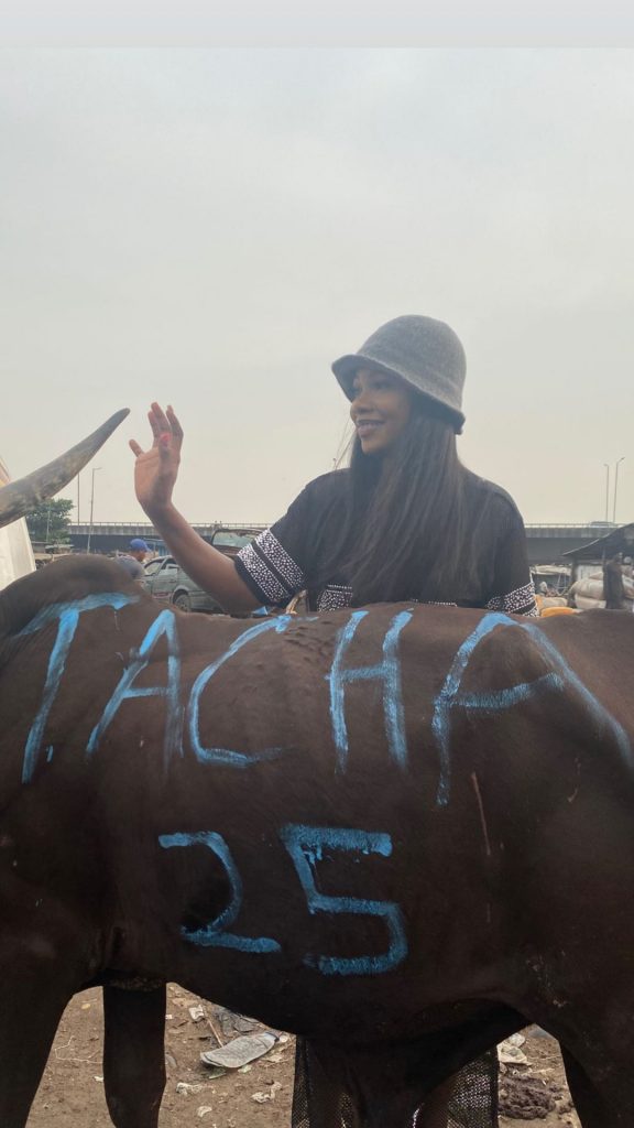 BBN star Tacha went to the market to get herself a huge cow and wrote her name on it with the inscription Tacha 25. The celebrity was excited as she shared the video.