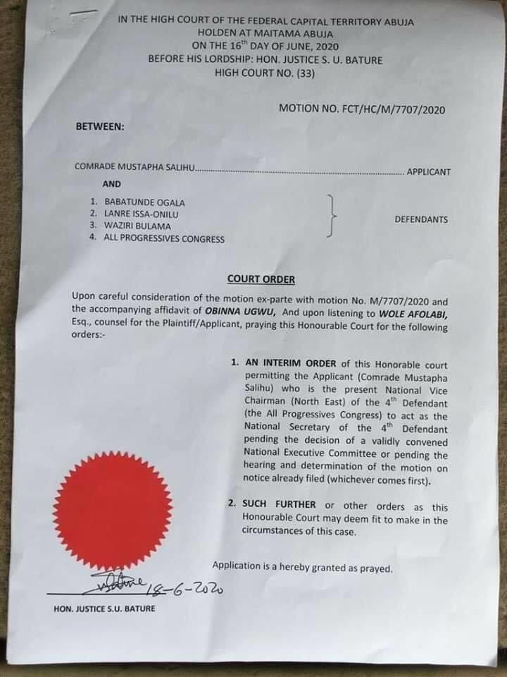 1 Comment in News BREAKING NEWS: Court Reaffirms and extends Order permitting Chief Victor Giadom to act as National Chairman of APC