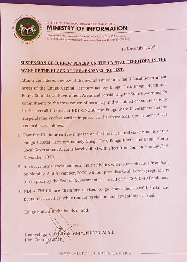 Security: Gov. Ugwuanyi imposes dusk-to-dawn curfew on Igbo Eze North, South LGAs