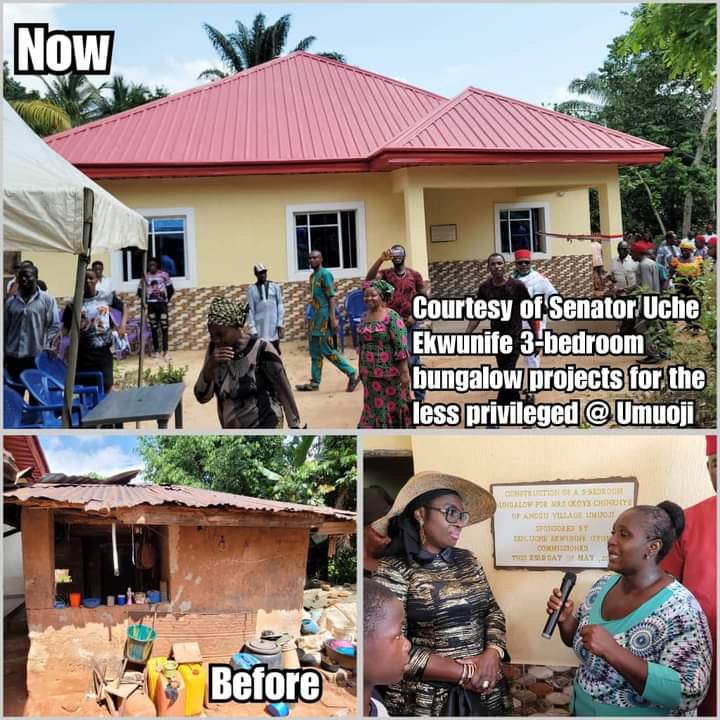 Ekwunife who represents Anambra Central Senatorial District in the 9th Senate noted that the housing project constructed for Mr and Mrs Okoye of Anogu village Umuoji, Idemili North LGA, was part of her commitment to uplift the living standards of constituents and take dividends of democracy down to the poorest of the poor.