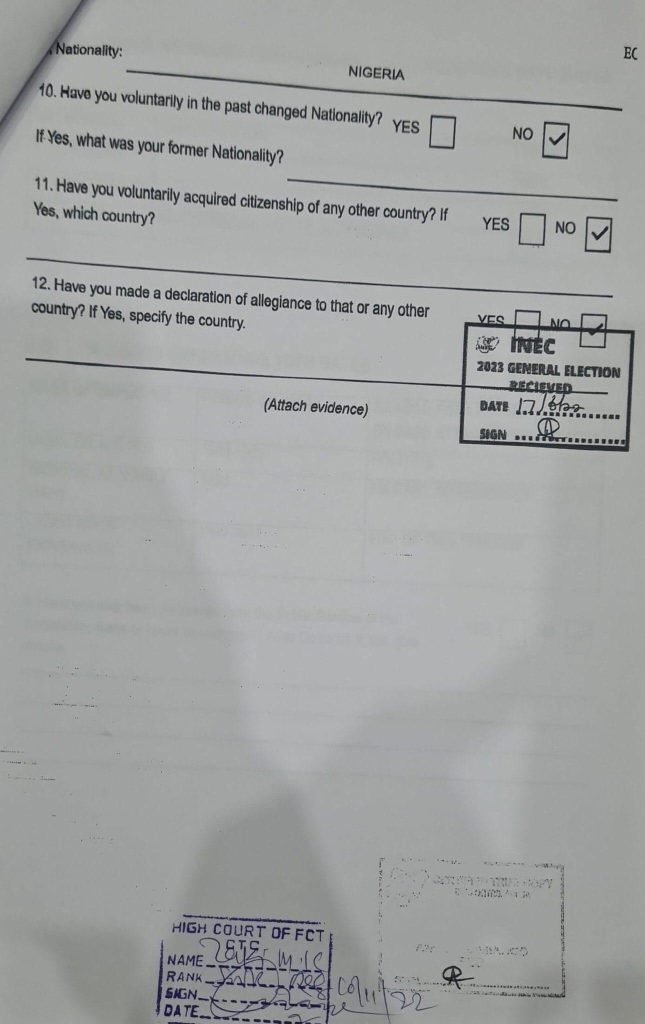 This revelation also raises another legal conundrum for Tinubu. He could be accused of perjury as the forms he submitted to INEC under oath show that he did not declare any foreign citizenship on the form.