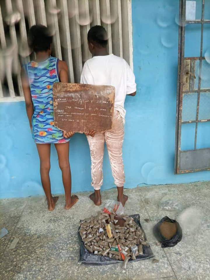 Acting spokesperson of the command, DSP Bright Edafe, in a statement on Friday, July 30, said the suspects were nabbed in their hideout during a police raid with the drug concealed in a nylon bag