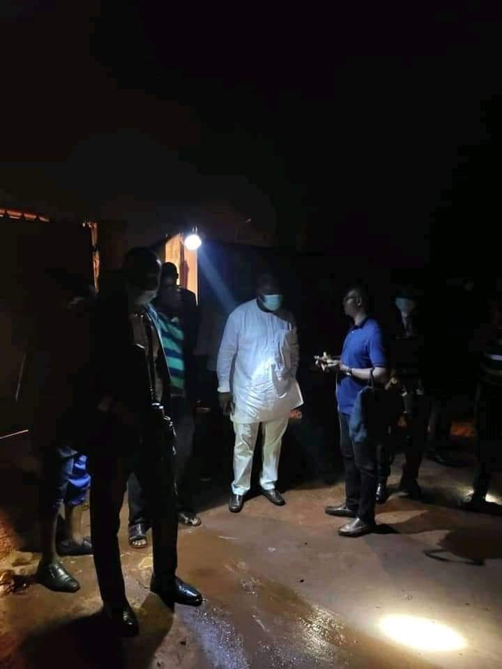 …As Gov. Ifeanyi #Ugwuanyi of #Enugu State takes brief from the #INEC Electoral Officer in charge of #Udenu LGA, Dustan Eke, when he arrived the scene at about 11.44pm on Thursday, to ensure effective intervention of the newly constructed fire service stations in Udenu and Igbo-Eze North Local Government Areas, as well as the one in Nsukka LGA, including the efforts of the security agencies towards safey of lives and property of residents of the area.