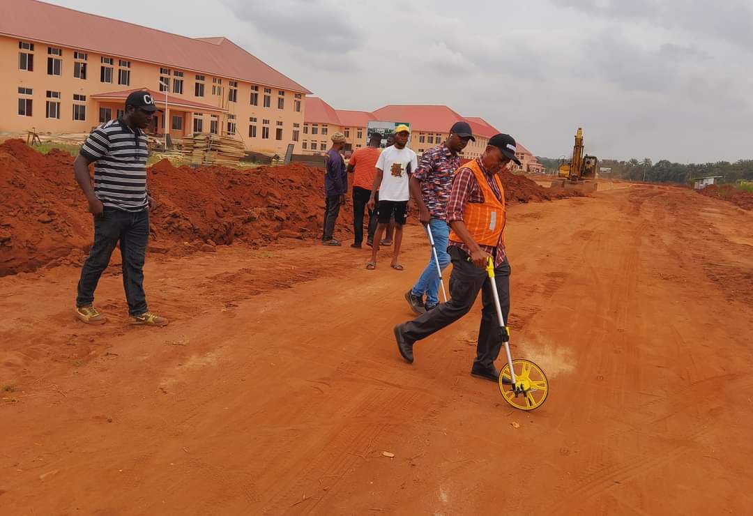 The administration of Governor Ifeanyi Ugwuanyi in Enugu State commences construction of internal access roads and parking areas at the permanent site of the Enugu State University of Science and Technology (ESUT) Teaching Hospital and College of Medicine, Igbo-Eno (ongoing), as the State Commissioner for Works and Infrastructure, Engr. Greg Nnaji, inspects ongoing massive works at the site.