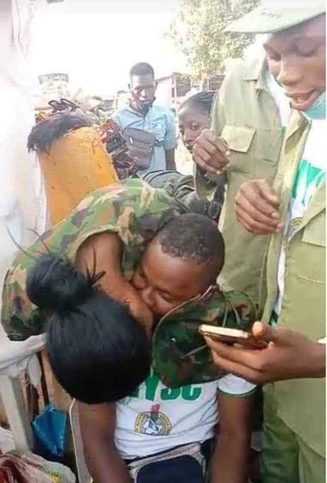 One of the video clips apparently recorded on the camp’s parade ground showed the yet-to-be-identified corps member holding a ring as he knelt to ask the female soldier to marry him.