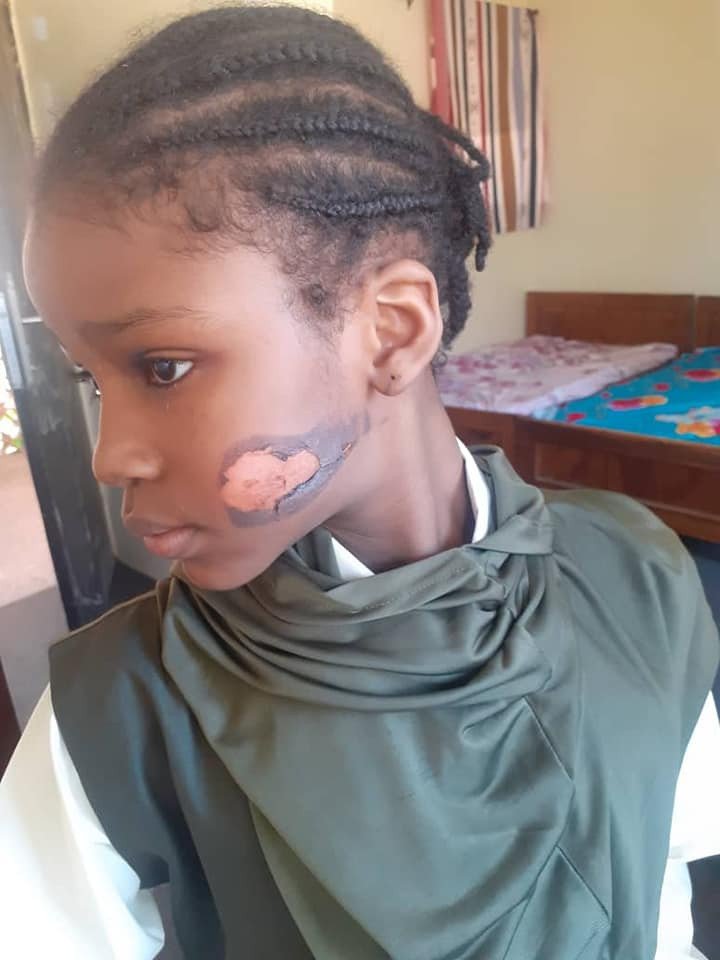 According to the video posted today by Hausa Blogger, Northern Hisbiscus, the young girl came to school on Tuesday morning, December 8, with burn wounds on her face and hand.