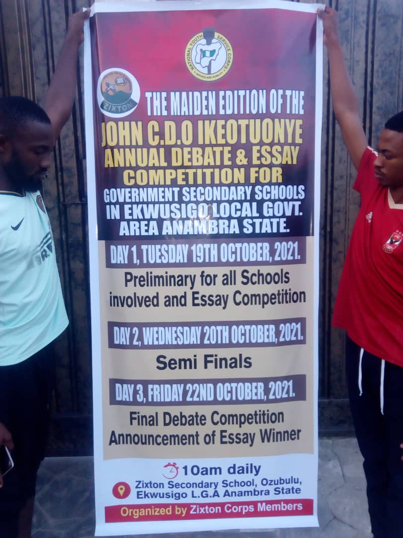 The Maiden Edition of the John CDO Ikeotuonye Debate and Essay Competition for Government Secondary Schools in Ekwusigo LGA of Anambra State is slated to commence next week Wednesday, 20th of October, 2021.